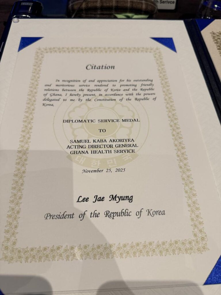 At the 2025 Development Cooperation Day ceremony in Seoul, held under the theme “Together for Global Prosperity” Dr. Samuel Kaba Akoriyea, Acting Director-General of the Ghana Health Service, received global acclaim for his remarkable leadership in advancing international health cooperation.